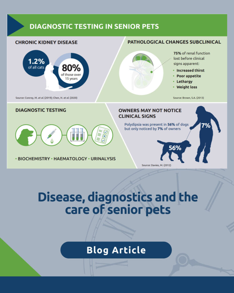 You can find more information about ageing pet diagnostics and care from a range of trusted veterinary sources and peer-reviewed publications. The 2019 AAHA Canine Life Stage Guidelines and the 2021 AAHA/AAFP Feline Life Stage Guidelines offer definitions and care recommendations for senior pets. The 2021 AAFP Feline Senior Care Guidelines and publications by Dhaliwal et al. and Ray et al. provide clinical protocols and nutritional advice. For disease-specific insights, refer to Guelfi et al. on dog ageing, Bermingham et al. on nutrition, and Brown et al. on feline CKD. Diagnostic performance is covered in Brans et al. and eClinPath’s SDMA overview. Additional resources include the IRIS CKD Guidelines, Cornell University’s feline health topics, the BSAVA PetSavers Ageing Canine Toolkit, and NationWide Laboratories own Nu.Q® Vet Cancer Test page.